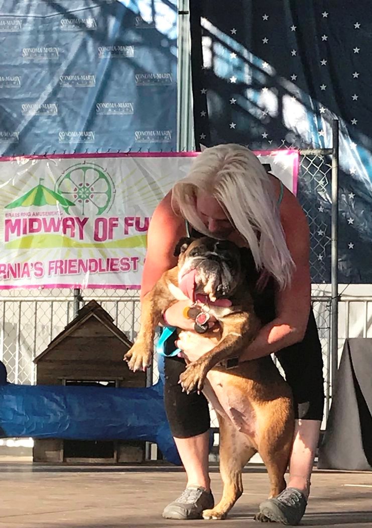 Con Zsa Zsa được bà chủ nựng sau khi thắng giải.
