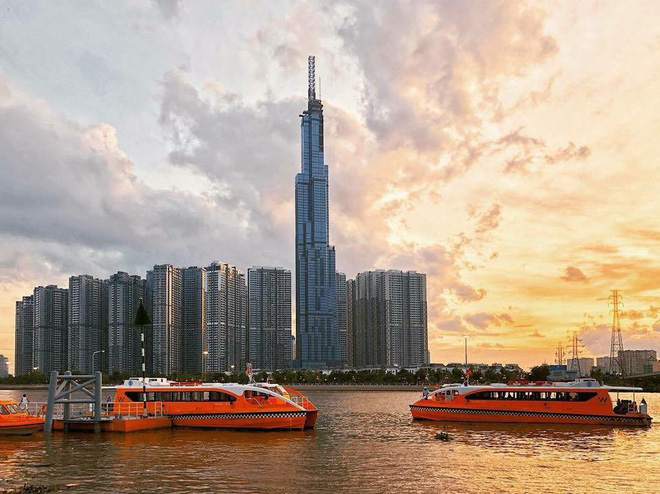 Nhìn từ xa, tòa nhà cao hơn 460m đã thành hình và trở thành điểm nhấn của Sài Gòn. Ở phía trong, những hạng mục thi công cuối đang được gấp rút hoàn thành.