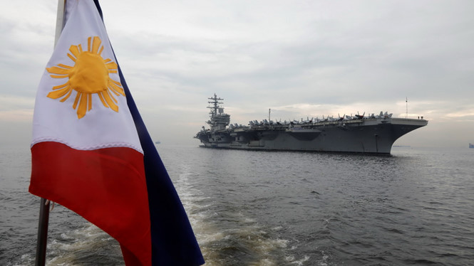 Siêu tàu sân bay USS Ronald Reagan đã neo đậu tại Vịnh Manila, Philippines sau chuyến tuần tra Biển Đông. Đây là tàu sân bay thứ 3 được Mỹ điều ra Biển Đông sau USS Carl Vinson và USS Theodore Roosevelt.