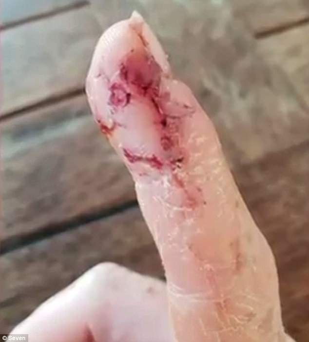 Ngón tay của Melissa bị gãy vì cá mập cắn.