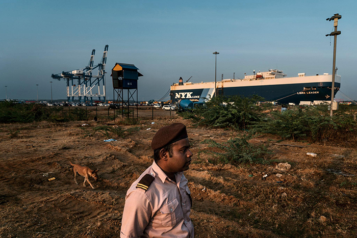 Một tàu chở hàng điều hướng một trong những làn đường vận chuyển nhộn nhịp nhất thế giới, gần Hambantota, Sri Lanka. (Ảnh: Adam Dean/The New York Times)