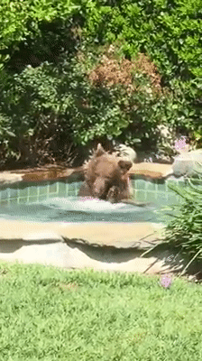 Một người đàn ông đã vô cùng bất ngờ với cảnh tượng trong sân nhà mình. Một chú gấu từ đâu tiến vào hồ bơi nhà anh chàng. Chú gấu hồn nhiên ngồi giữa bể sục và uống cocktail để ở đó.
