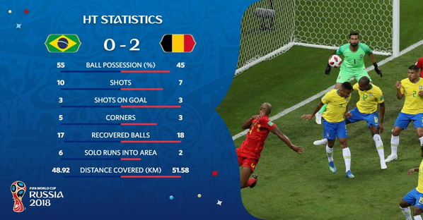 Trận tứ kết thứ hai World Cup giữa Brazil và Bỉ sắp diễn ra. Đây có thể nói là trận đấu được mong đợi nhất vòng tứ kết. Bỉ đã vào tứ kết sau khi thắng Nhật trong trận cầu đầy kịch tính. Nhật đã dẫn trước 2 bàn. Và Bỉ đã gỡ hòa, và phút bù giờ cuối 90+4 Bỉ đã thắng Nhật bằng phản công nhanh.