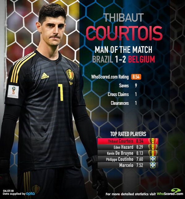 Trận tứ kết thứ hai World Cup giữa Brazil và Bỉ sắp diễn ra. Đây có thể nói là trận đấu được mong đợi nhất vòng tứ kết. Bỉ đã vào tứ kết sau khi thắng Nhật trong trận cầu đầy kịch tính. Nhật đã dẫn trước 2 bàn. Và Bỉ đã gỡ hòa, và phút bù giờ cuối 90+4 Bỉ đã thắng Nhật bằng phản công nhanh.