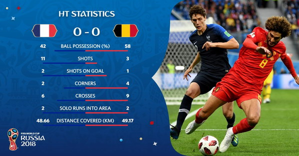 Tỷ số: Pháp 0 - 0 Bỉ