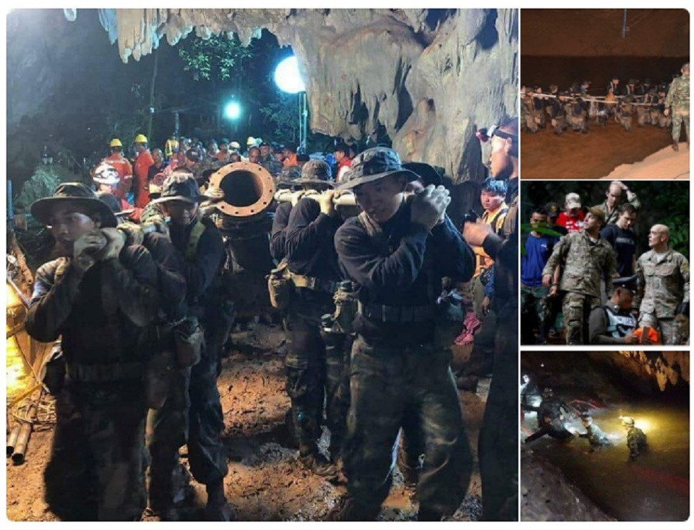 Cư dân mạng chia sẻ hình ảnh lực lượng cứu hộ sau khi 13 nạn nhân mắc kẹt trong hang Tham Luang Nang Non được giải cứu