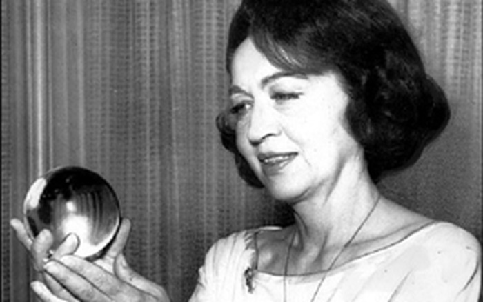 Nữ tiên tri Jeane Dixon và quả cầu pha lê màu xanh của bà.