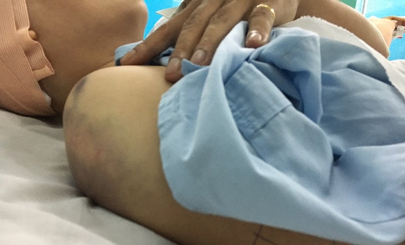 Vết thương do chày đâm tiêu ở vai chị C. Ảnh: HL