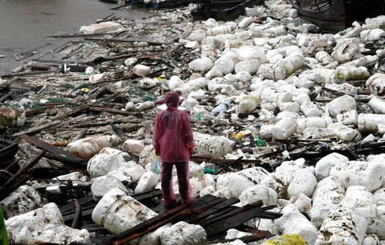Người dân sững sờ trước cảnh tan hoang của trang trại thủy sản sau khi bão Maria quét qua.