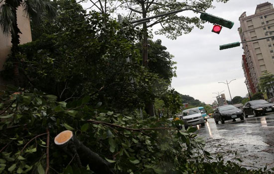 Những cây lớn bị bão quật bật gốc trên đường phố tại Đài Loan.
