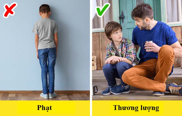 - Thay vì ngăn cấm và đưa ra những hình phạt vô lý, bố mẹ nên thỏa thuận với trẻ.