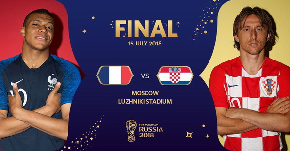 Xin chào cả nhà, một trận đấu mà cả thế giới đang chờ đợi, trận đấu quan trọng nhất, chung kết World Cup 2018 giữa Pháp và Croatia sắp sửa diễn ra. Chúc các quý vị theo dõi và cổ vũ vui vẻ hạnh phúc, Happy a nice Sunday.