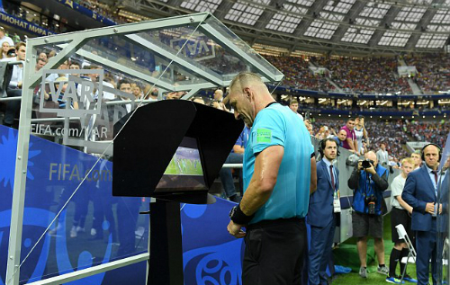 Pháp vượt lên dẫn Croatia 2-1 ở phút 38, nhờ công lớn của công nghệ VAR. Khi bóng từ quả phạt góc bay tới tay Ivan Perisic, trọng tài Nestor Pitana không thổi phạt đền. Tuy nhiên, sau khi được tư vấn từ tổ trọng tài video, ông Pitana đã ra xem lại băng hình bên ngoài đường biên, và cho Pháp hưởng quả đá 11m.