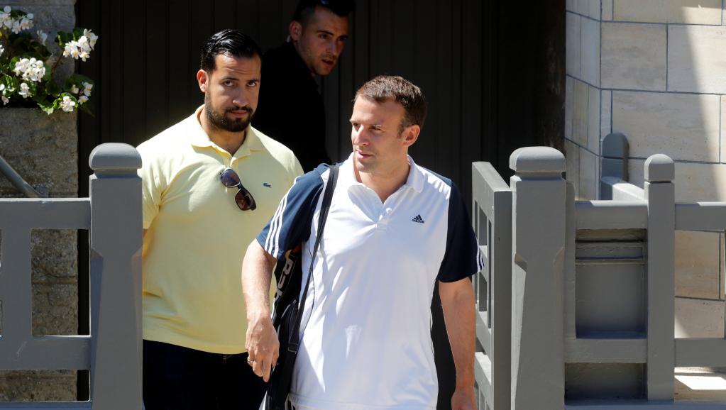 Tổng thống Pháp Emmanuel Macron và Alexandre Benalla (áo vàng), chuyên trách an ninh tổng thống, tại Touquet ngày 17/06/2017.