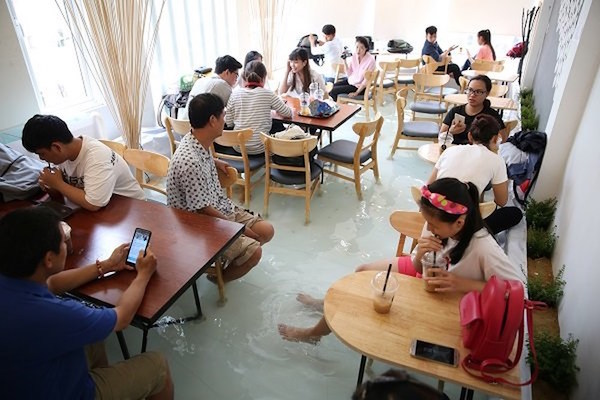 Với kiểu mô hình cafe cá bơi dưới chân như vầy có sống nỗi kh ạ?