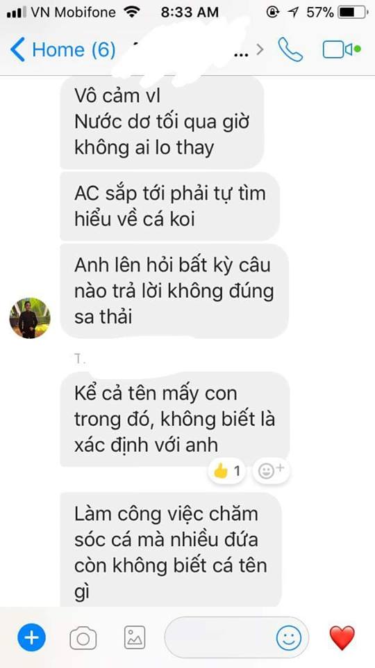 Ông chủ lúc nào cũng bảo bọn em phải có lòng yêu thương động vật mới làm được ở vị trí này, giờ mỗi lần cá chết bọn em phải đền tiền.