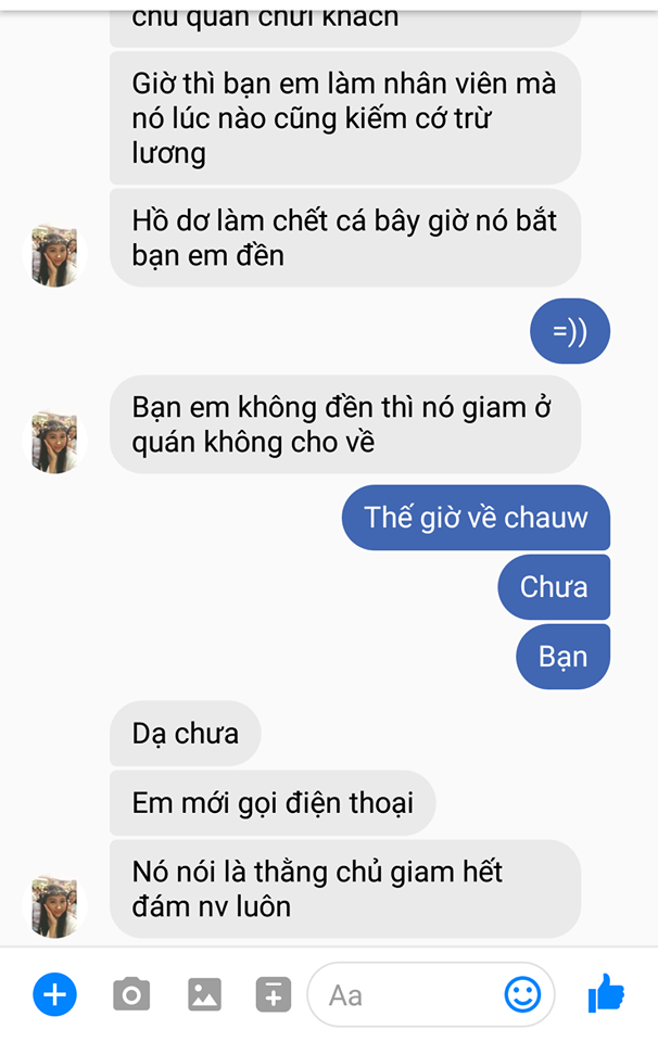 Em xin nghỉ rồi mà chủ quán không cho về, bắt xoá bài viết rồi chụp chứng minh thư các thứ mới đc về