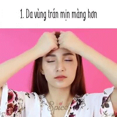 Đầu tiên, bạn dùng 2 bàn tay nắm thành nắm đấm, chà và ấn phần ngón tay của nắm đấm lên trán với lực vừa phải, theo chiều từ giữa trán ra 2 thái dương 2 bên. Động tác này giúp ngăn ngừa và xóa bỏ những nếp nhăn quanh vùng trán bằng cách thư giãn vùng trán kết hợp bấm huyệt để loại bỏ căng thẳng.