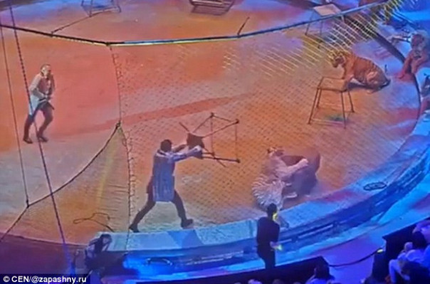 Đoạn video được một người đi xem xiếc ghi lại đã thu hút đông đảo sự quan tâm của dư luận. Một con hổ bất ngờ lao vào tấn công sư tử khi đang biểu diễn. Chúng đã không chịu dừng lại cho đến khi người huấn luyện thú bắn súng chỉ thiên.