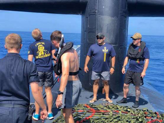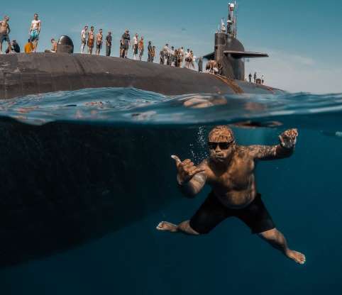 Old  Default Hình ảnh thuỷ thủ Mỹ bơi cạnh tàu ngầm hạt nhân