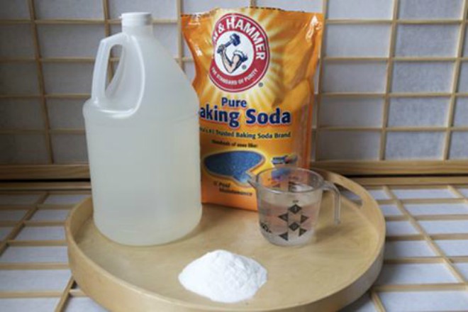 Sử dụng Baking soda + dấm + nước sôi