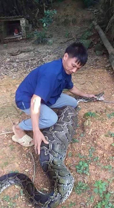 Sáng sớm 10.8.2018, một người dân ở Đồng Sinh, xã Tân Lập, huyện Hữu Lũng (Lạng Sơn) đã bắt được một con trăn khổng lồ, nghi là nuốt con dê 15kg của gia đình ông.
