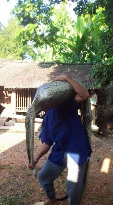 Một người dân đã bắt được con trăn khủng, dài đến 3m. Cái bụng to tướng của nó đã tố cáo nó "ăn trộm" dê của ông ta. Con dê bị mất nặng 15 ký.