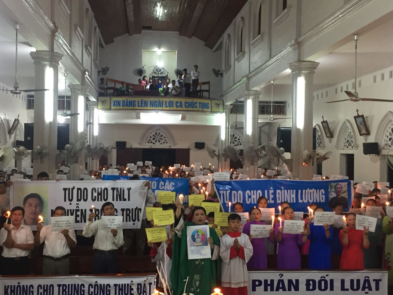 Giáo xứ Mỹ Khánh ở huyện Yên Thành, tỉnh Nghệ An, hôm Thứ Bảy có buổi cầu nguyện cho công lý, hòa bình và cầu nguyện cho các tù nhân lương tâm, trong đó có ba người sắp bị đưa ra xét xử là ông Lê Đình Lượng, ông Nguyễn Trung Trực và Bà Huỳnh Thục Vy.