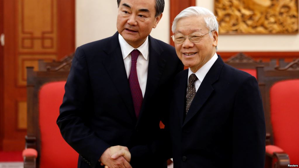 Ủy viên Quốc vụ viện Trung Quốc Vương Nghị mới gặp Phó Thủ tướng kiêm Bộ trưởng Ngoại giao Phạm B́nh Minh bên lề một sự kiện ngoại giao liên quan tới Hiệp hội các quốc gia Đông Nam Á ở Singapore.