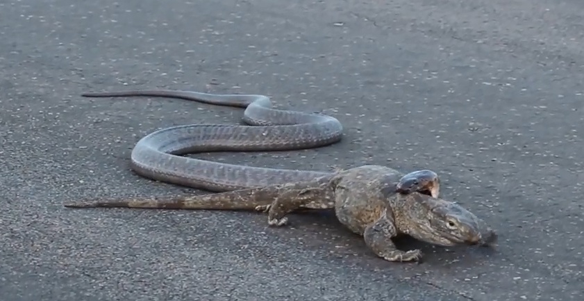 Old  Default Kỳ đà bị rắn hổ mang tấn công giữa đường phố (+video)