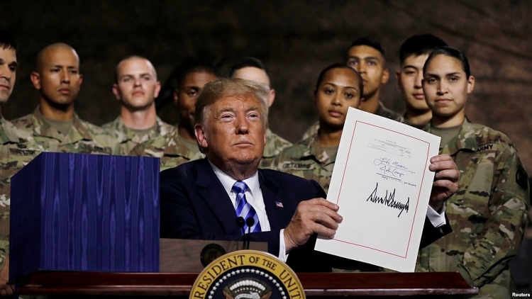 Ngày 13/8, Tổng thống Donald Trump đã ký ban hành Luật chính sách quốc phòng trị giá 716 tỉ đôla cho phép chi tiêu của quân đội trong năm 2019.
