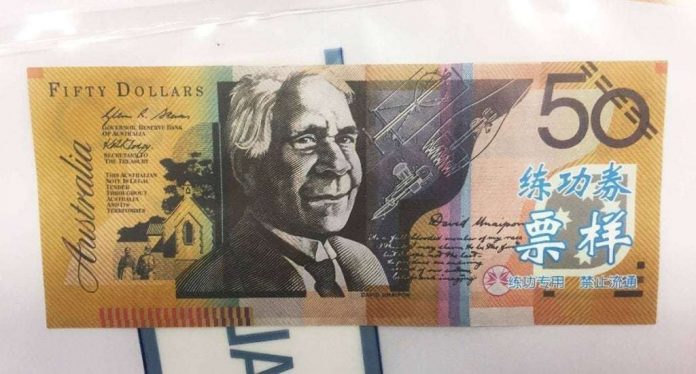 Tiền giấy Úc giả với các ký tự Trung Quốc trên đó lần đầu tiên được phát hiện trên người một người đàn ông cuối tháng 8 năm ngoái. Người này sau đó bị giam giữ vì nhiều hành vi đáng ngờ tại thị trấn Murray Bridge ở Nam Úc.