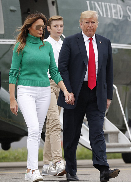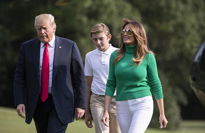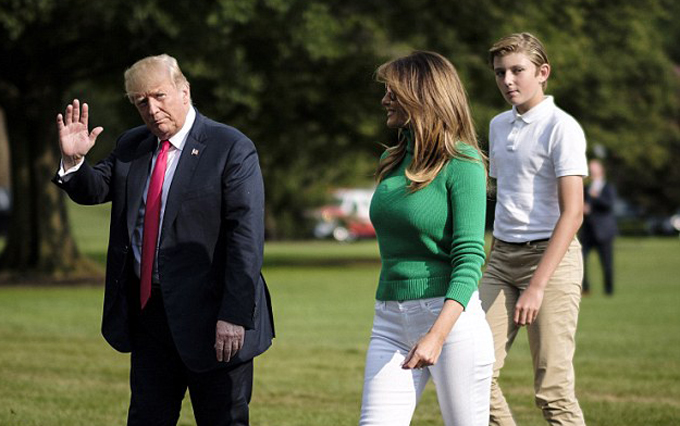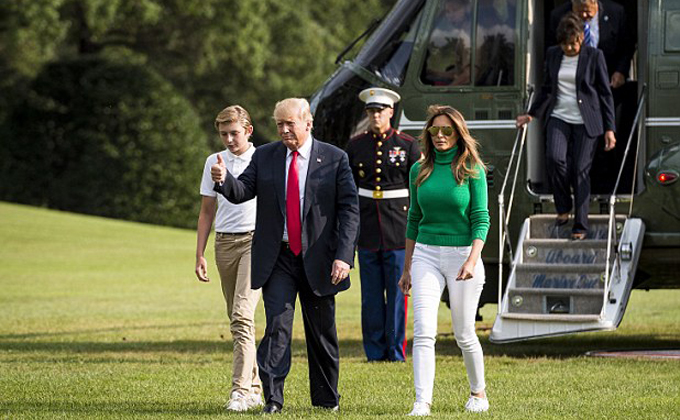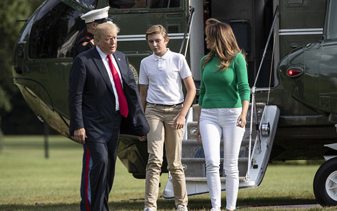 Hôm 19/8, Barron Trump, cậu con trai duy nhất của ông Donald Trump với vợ ba, Đệ nhất phu nhân Melania, cùng bố mẹ đáp chuyến bay từ Bedminster, bang New Jersey, về thủ đô Washington DC để chuẩn bị vào năm học mới.