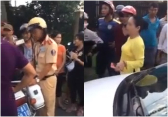 Khi chồng vi phạm giao thông thì bị CSGT yêu cầu đưa xe ô tô về đồn. Ngay lập tức vợ nhảy xổ xuống quát nạt, chỉ thẳng tay vào mặt CSGT, thóa mạ.