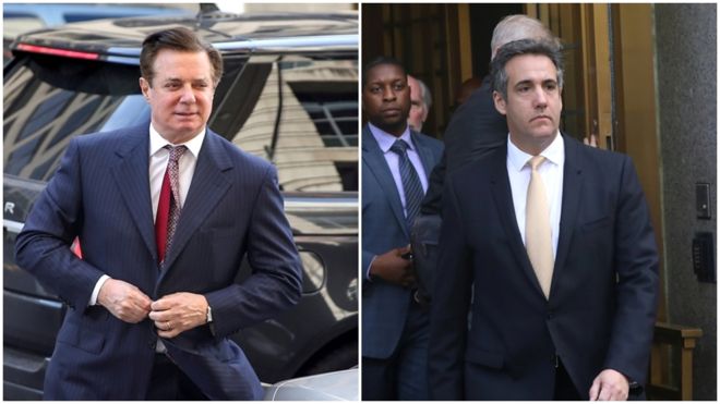 Hôm 21/8, luật sư cũ của ông Trump, ông Michael Cohen thừa nhận vi phạm luật tài trợ bầu cử trong một phiên tòa ở Manhattan và trong khi đó, một bồi thẩm đoàn ở bang Virginia cũng kết tội cựu giám đốc chiến dịch tranh cử Paul Manafort với 8 tội danh về tài chính.