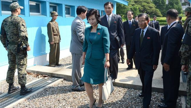 Bà Kim Song Hye (giữa), quan chức cấp cao tại Ủy ban Tái thống nhất Hòa bình liên Triều, đi cùng phái đoàn Triều Tiên tại biên giới Hàn - Triều năm 2013. Ảnh: Reuters.