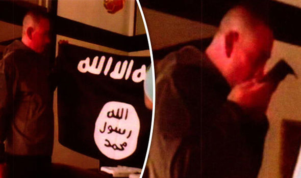 Binh sỹ Mỹ thề trung thành với IS và hôn lên lá cờ của tổ chức khủng bố. (Ảnh: Reuters)