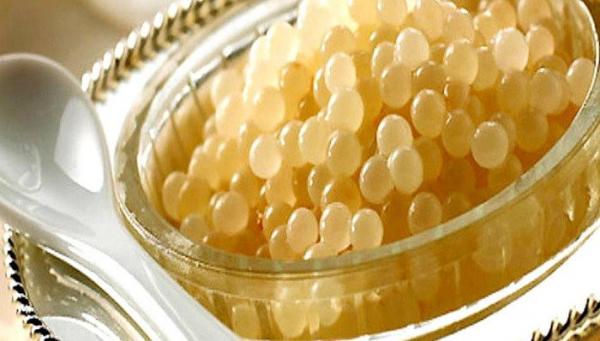 Trứng cá muối caviar đắt nhất thế giới được làm từ trứng của loài cá tầm quý hiểm ở vùng biển Caspi. Không giống màu của các trứng cá muối khác, trứng cá muối của vùng biển này lại có màu trắng ngọc trai. Giá thành của một hộp trứng cá muối đắt đỏ này dao động từ hàng ngàn đến hàng chục USD.