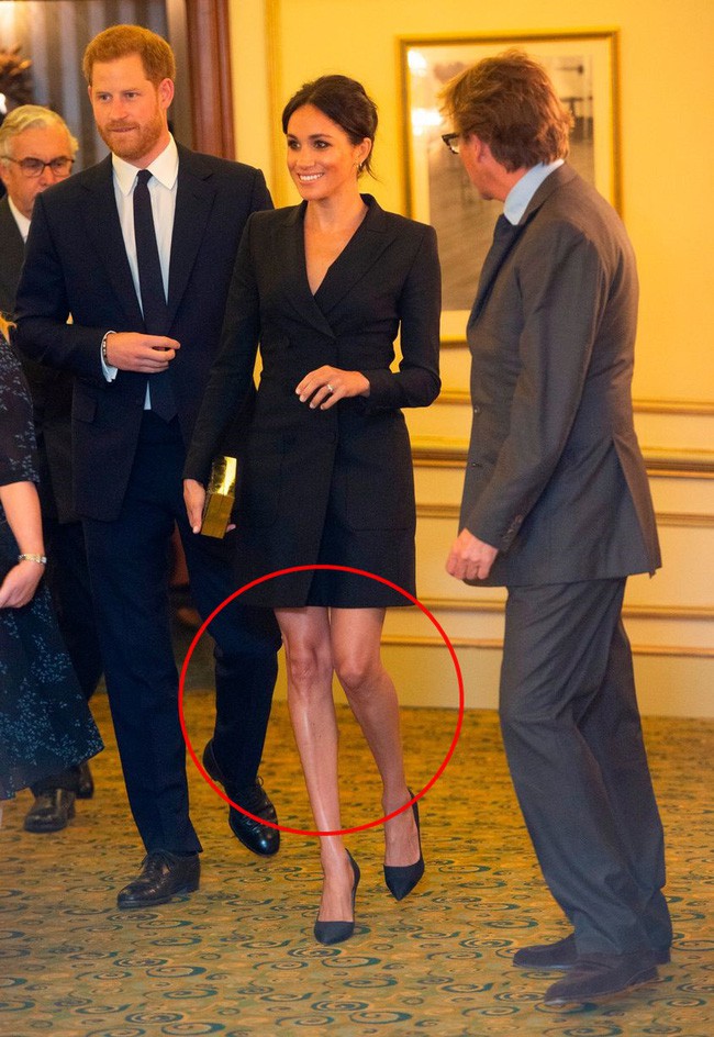 Bộ váy ngắn để lộ nhược điểm đôi chân của Meghan.