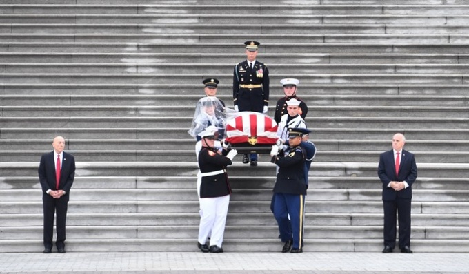 Đội danh dự quân đội Mỹ đưa linh cữu ông McCain rời toà nhà Quốc hội Mỹ để đến Nhà thờ Quốc gia.