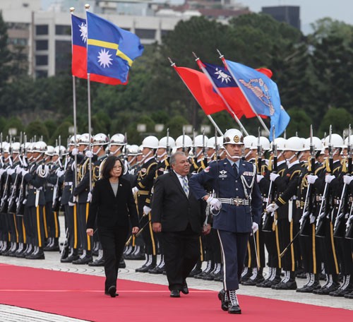 Lãnh đạo Đài Loan Thái Anh Văn đón tiếp Tổng thống Nauru Baron Waqa trong một chuyến thăm năm 2017. ẢNH: CAN