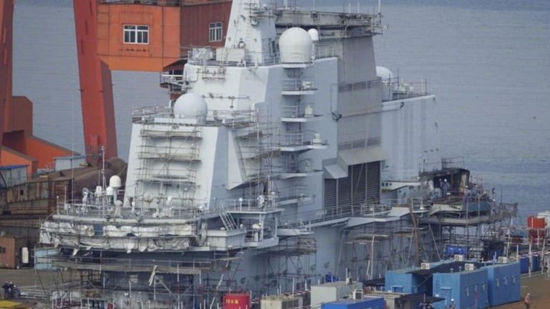 Tàu sân bay Liêu Ninh trên đà sửa chữa tại khu vực công xưởng đóng tàu Đại Liêu
