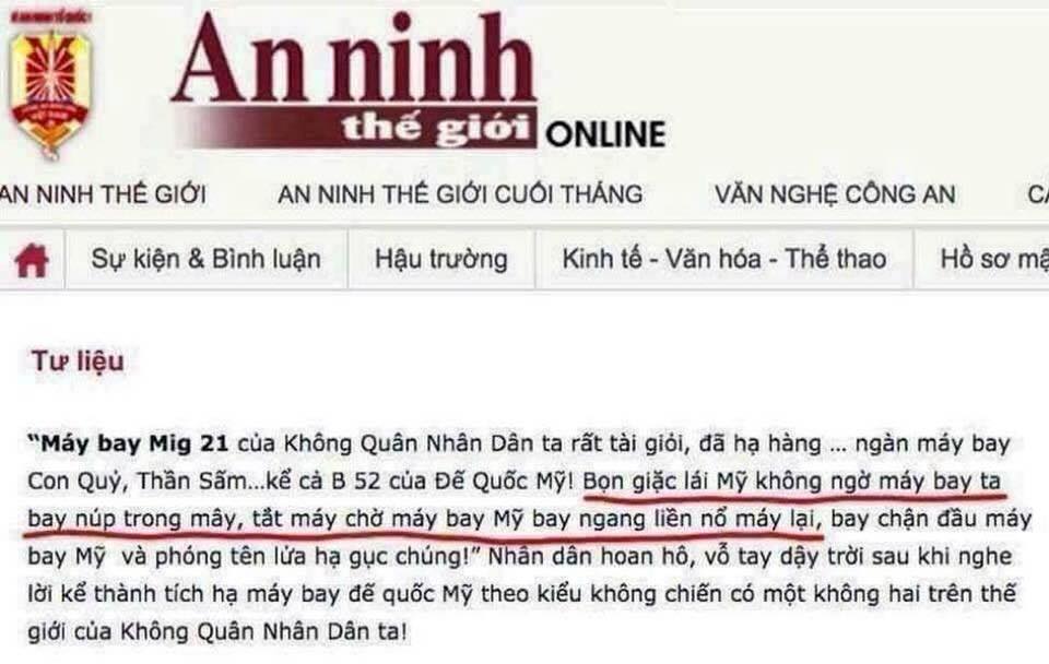 dai y như mấy thằng VC, tới giờ còn kể lái máy bay, tắt máy, núp trong mây.....hahahahhaha