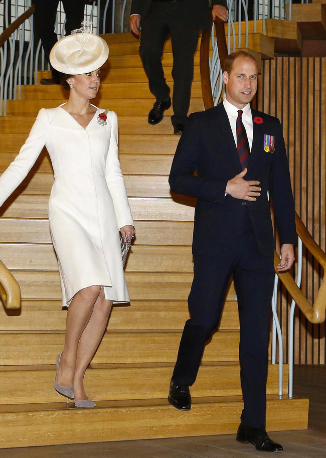 Hoàng tử William đi trước vợ vài bước để hỗ trợ vợ đi xuống cầu thang