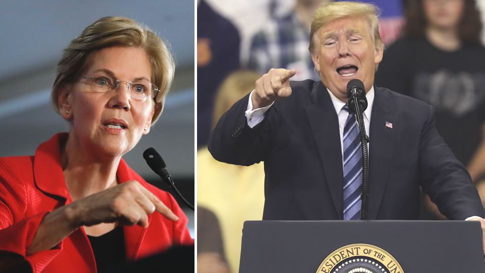 Thượng nghị sĩ Elizabeth Warren (trái) cho rằng cần tước quyền của Tổng thống Donald Trump (phải). Ảnh: AP