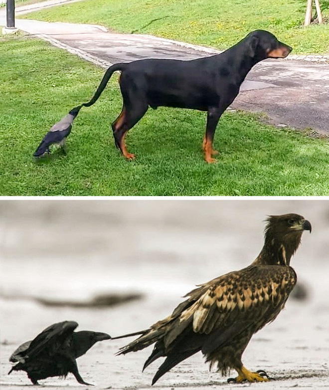 Quạ được biết đến là 1 trong những loài sở hữu trí nhớ siêu đẳng và lại còn thông minh nữa. Thế nhưng, không ít người bật cười khi thấy quạ thích tóm đuôi con vật khác.