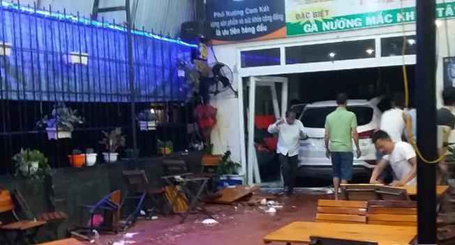 Chiếc xe ô tô 7 chỗ đâm thẳng vào quán khi đang có đông người ngồi nhậu phía trong.