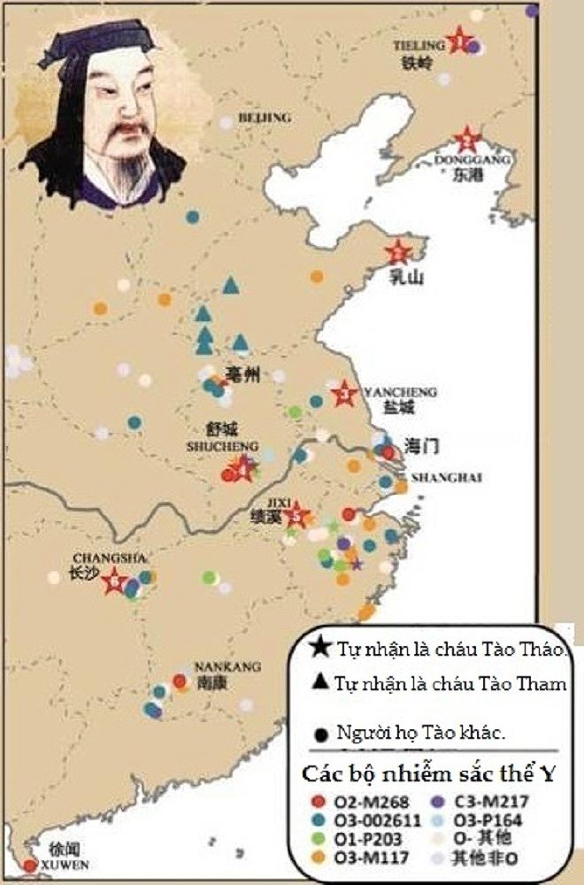Bản đồ họ Tào. Những người có bộ nhiễm sắc thể O2-M268 mới thực là con cháu Tào Tháo.