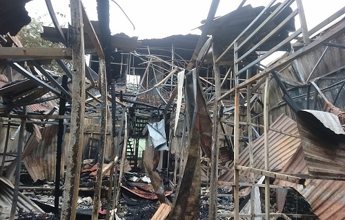 Nhiều ngôi nhà bị thiêu rụi trong vụ cháy gần Viện Nhi tối 17/9. Ảnh: A.T