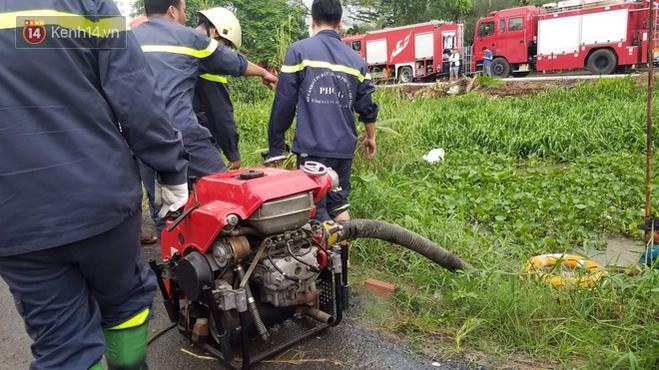 Cảnh sát PCCC phải hút nước dưới kênh để dập lửa.